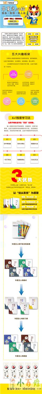 华夏定心格练字以国家专利“定心格”为核心,通过设计五大兴趣板块,教学6+1独家学习法,结合孩子身心发展特点,有效改善孩子练字枯燥,练字无效的难题,提高孩子练字速度和效率,提升孩子的专注力,使孩子的心能够真正的静下来,实现华夏定心格,定心,定笔,定人生的书法教育理念小百姓网。