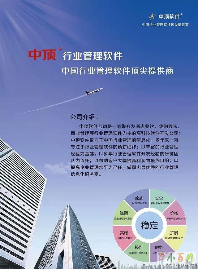 中顶软件科技有限公司是一家以开发酒店、餐饮、---行业管理软件为主的高科技软件开发公司;中顶软件致力于中国行业管理的信息化,多年来专注于酒店、餐饮、---行业管理软件的精耕细作;以丰富的行业管理经验为基础;以多年行业管理软件开发经验的研发团队为依托;以帮助客户大幅提高利润为最终目的;以提高企业理水平为己任小_百_姓_网。是---早酒店、餐饮、---行业管理软件专业供应商之一,也是目前国内优秀的行业管理信息化服务商x b a i x i n g c o m。公司下设研发部、销售部、客服部、市场需求调研中心等部门来自www.xbaixing.com。各部门同心协立,研发出了一个个优秀的产品来源www.xbaixing.com。这些产品在全国范围内得到了广泛的应用,并得到了广大用户的一致认可和好评skH。中顶公司长期以来在社会各界的广范支持下,得到了迅速稳健的发展来源www.xbaixing.com。我们肩负着提高中国企业信息化管理的重任;一支富有创造力和敬业精神的强大团队,为争做中国---的行业管理软件提供商正一直不懈的努力着小 百 姓 网。这支不断壮大的团队不但是中顶软件发展的基石,也是为全国广大用户提供具有---的、功能能强大、简单易用的优秀的软件产品的有力保证小_百_姓_网。